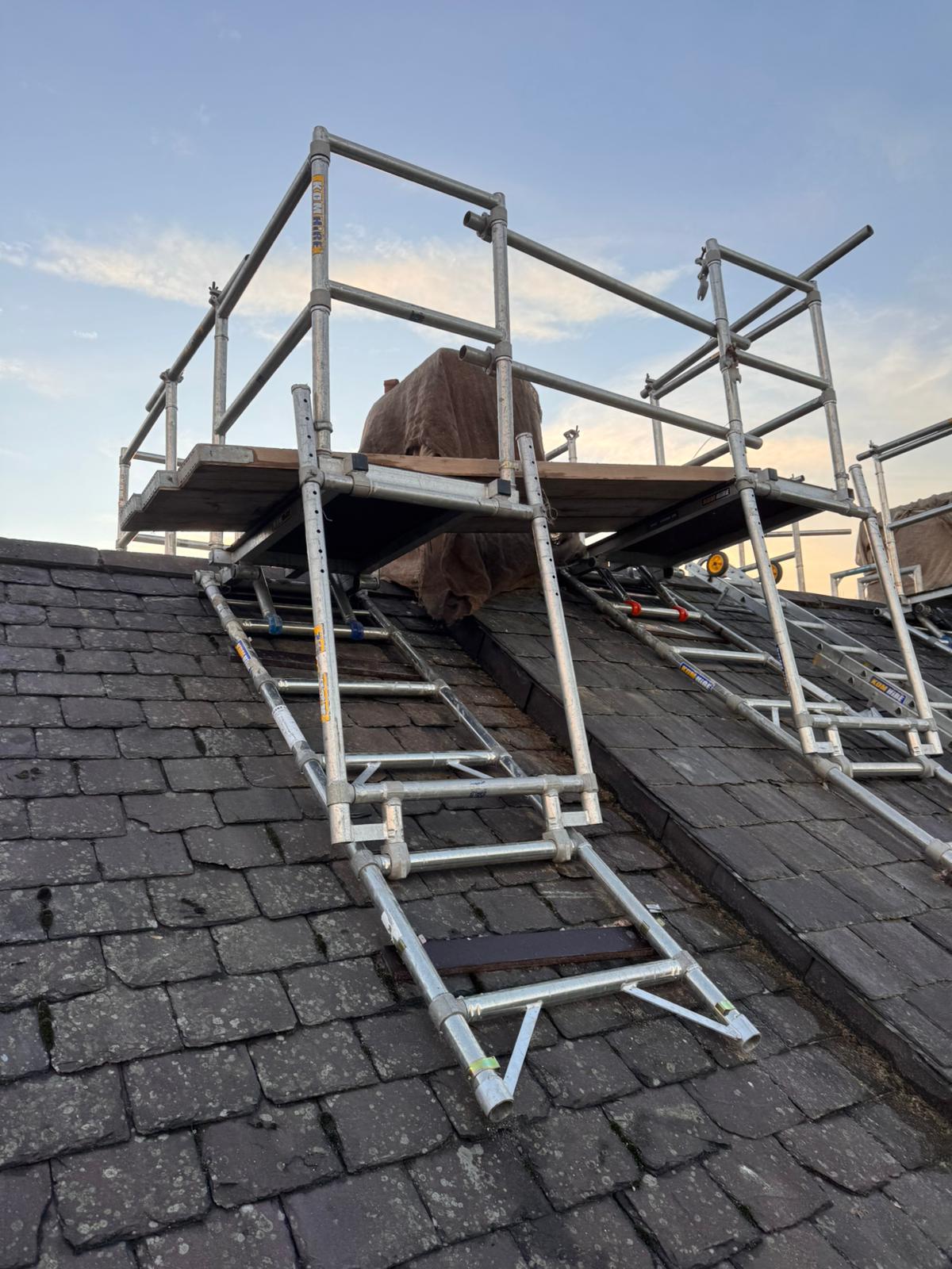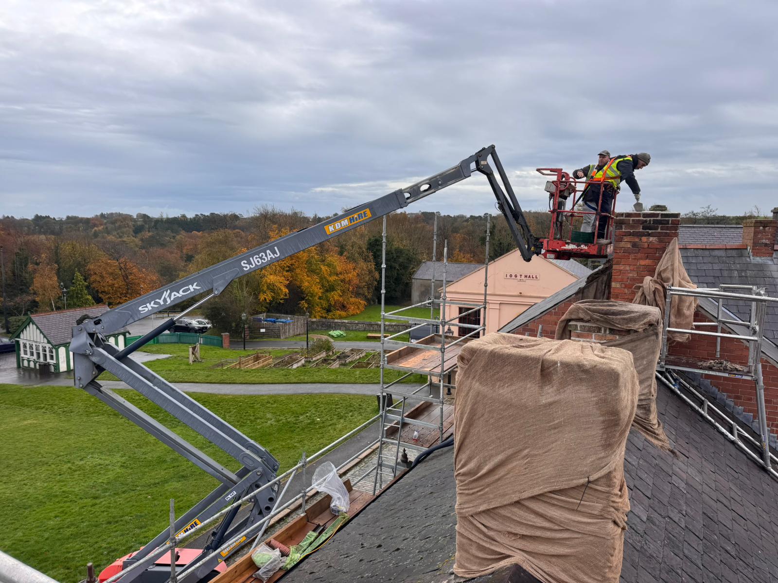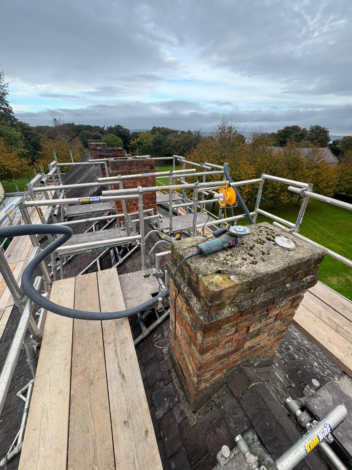 One chimney was found to be structurally unsafe and had to be carefully dismantled. It was then fully rebuilt using the original bricks, bedded and pointed in lime mortar to retain historic character and ensure appropriate movement and flexibility within the structure.