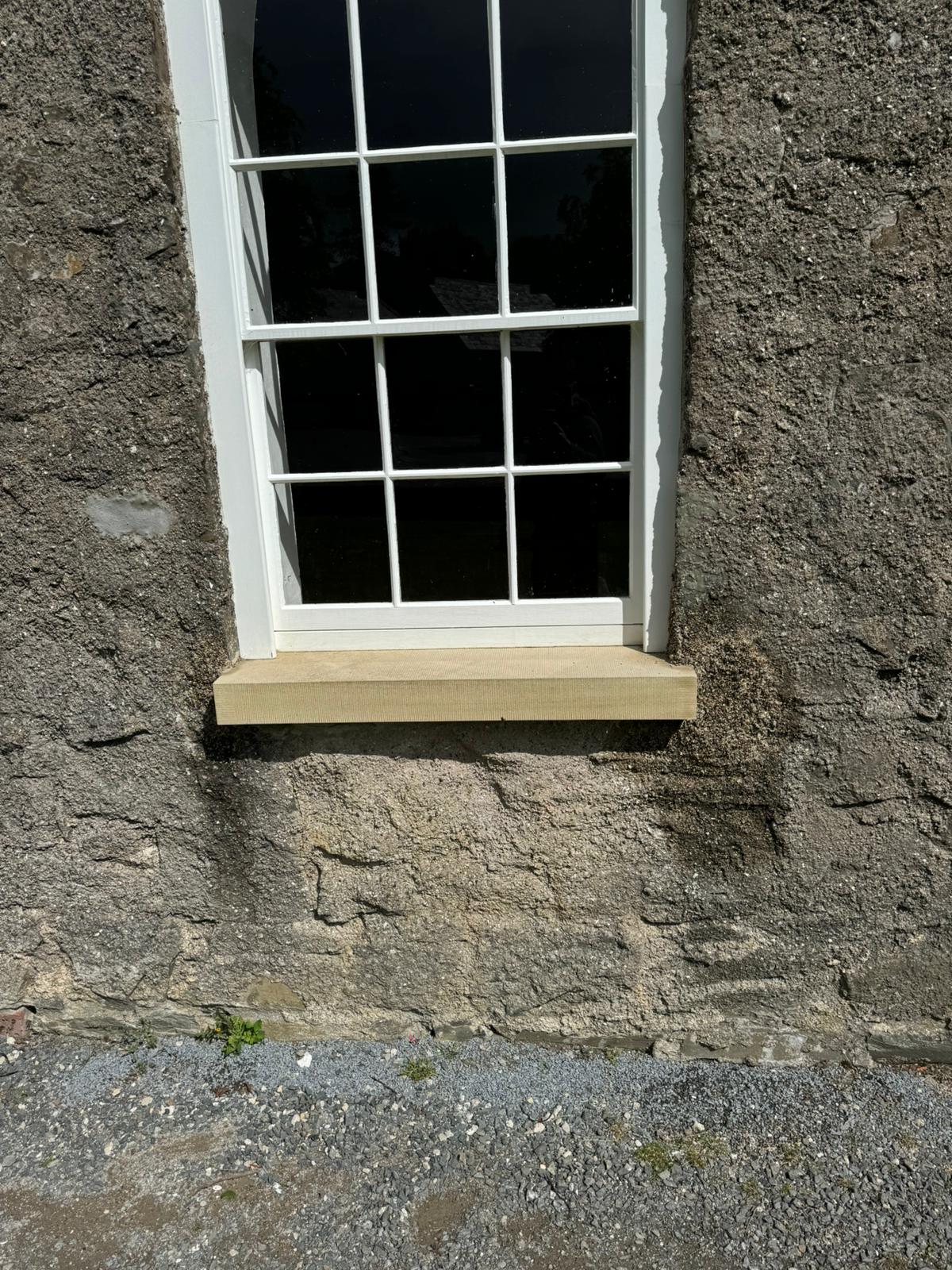 Three sandstone sill replacements were recently completed on the south elevation of Kilmore Church, located within the grounds of the Ulster Folk Museum. Each new sill was carefully crafted with a traditional hand-tooled finish to match the character and detailing of the original masonry.